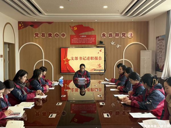 徐雅娟就2025年度抓基层党建工作进行现场述职。报告从三个方面系统系统梳理了本年度支部在强化思想引领、抓实组织建设、深化学习教育等方面的工作成效,坚持问题导向,明确改进方向,为全体党员监督评议党组织工作提供了依据,也为后续党建提质增效奠定基础。