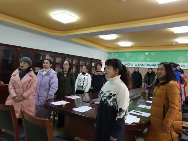 12月29日下午3点,宣城市第二幼儿园第九届第二次教职工代表大会在总园会议室隆重召开,全体代表出席了此次会议。 会议在庄严的《国歌》声中拉开了帷幕。会上,园长夏俊峰作了《市二幼工作报告》并解读了《市二幼绩效考核方案》、会计作了《2018年市二幼财务工作报告》,副园长许金岚对代表们的提案逐一进行了答复,副园长柯宣进宣读了《思想意识形态工作执行要求及制度》。随后代表们对两个工作报告和各个方案、制度进行了举手表决,全票通过。 教代会结束后,教职工“迎新”联欢会开始了。体智能游戏《集体冲冲冲》《抱团游戏》,让全体教工的积极性充分的调动起来。随后,教师们纷纷登台表演精心准备的节目《串烧好嗨哦》《哈密姑娘》《吹气球》等,节目精彩纷呈,现场气氛热烈、欢声笑语不断。接着,夏俊峰送上了新年祝福,并向全体教工表达了诚挚的祝福和对新一年的美好展望。市二幼全体教职工以这种独特的方式,迎接2019的到来。 此次教代会和“迎新”联欢会的圆满召开,充分体现了代表们参与幼儿园管理和监督的热情,更展示了市二幼教职工的亮丽风采和良好精神风貌。(胡淑琴)
