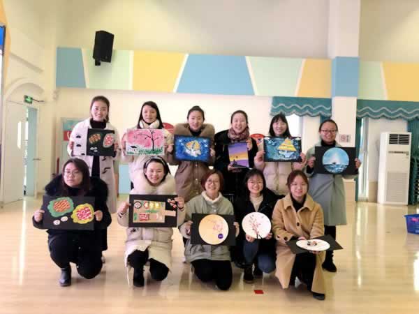 为提升教师的美术专业素养,提高美术活动的课堂指导能力, 2月23日上午,市二幼邀请"小梵高"艺术培训总部老师来园开展课程体验式培训。 此次培训主要是针对幼儿园小、中、大班如何开展小梵高特色美术课程进行实质性操作与培训。整个活动中老师们不仅认真听讲的做记录,还就教学中的困惑进行了积极求教。此外,培训老师还分别对本学期开展的小梵高美术课程进行逐一讲解,对美术活动中的各个技巧进行了重难点解析,并带领全体老师现场作画体验,针对老师们在绘画体验中出现的问题进行分析与讲解。
