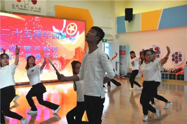 此次活动由市二幼工会牵头、党支部组织全体青年教师参加的,共有六支组队参赛,每支组队都服装统一,妆容秀丽。比赛中,女教师动作轻盈秀美,举手投足灵动到位;男教师舒展健美,协调连贯,给人以美的享受。在洋溢着中华传统情怀的戏曲音乐伴奏下,他们或腕花小云手,或踢腿弯腰,或单拉山膀,每个动作都干净利落,每次亮相都充满着纯正的“戏曲味儿”。参赛者以饱满的情绪,加上精心设计的舞蹈编排,向在场的观众展示了阳光向上的精神面貌,给人以莫大的享受。
