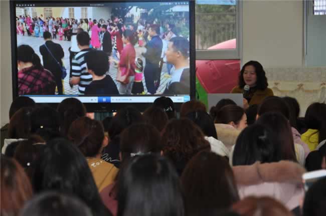 “怎样将艺术活动融入到幼儿一日活动中?””什么是有效的玩中学?”等等,为了解开教师们这些实际工作中的困惑,近日,市二幼诚邀幼儿音乐启蒙教育专家、江阴市实验幼儿园园长陈晓萍来园作了《做孩子喜欢的艺术启蒙教育》的专题讲座,全园及指导园100多名教师认真聆听了讲座。