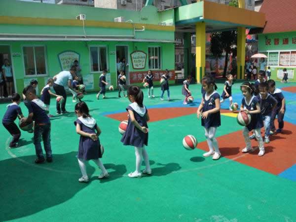 “dam daba dam daba……”清晨,在动感的音乐声中,市二幼大班的孩子们开始了与篮球的游戏。两手上下拍、单手运球、双人交换拍……家长们见了,无不惊叹孩子们高超的玩球技能!
