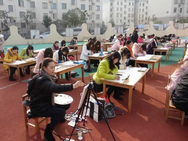 绘画是幼儿教师必须掌握的基本技能之一,将基本功训练融入到日常教学是市二幼教师的工作要求。达标比赛中,教师们纷纷亮出了自己的看家本领:有的教师先铅笔打底,再用记号笔勾,最后用油画棒涂色;有的准备好各类工具,用水粉作画;还有的是用几种材料共同配合完成的作品,她们专注作画,成操场上一道亮丽的风景。最后幼儿园的评委围绕主题内容、线条流畅、涂色均匀等几方面进行评定,市二幼夏渡分园的系列作品《国之粹》、二幼本部的《线描本色》、开元分园的《雀之歌》、《冬季恋曲》等作品获得大家一致好评。