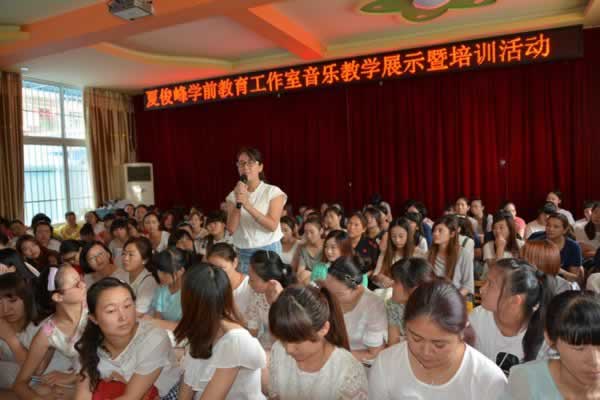 7月2日,夏俊峰学前教育名师工作室在宣城市第二幼儿园开展了音乐教学展示暨培训活动,工作室近百名幼儿园教师参加了此次活动。 活动开始,夏俊峰学前教育工作室的主持人夏俊峰简介了此次活动的意义,旨在提高各位教师在各自的岗位上业务能力得到提高。 活动中,老师们聆听了工作室成员《关注幼儿卫生保健,促进幼儿健康成长》及《音乐游戏和集体舞教学的组织策略》的讲座,了解了以幼儿园如何以一日活动安排为线索做好幼儿卫生保健工作,知道了音乐游戏和集体舞的联系与区别,懂得了在以后的音乐教学中如何更好的诠释音乐作品。 工作室学员许明月和傅巧云两位老师,分别给大家展示了两节中班音乐游戏《鞋匠之舞》、《小动物和魔王》。两位老师对同一个音乐作品进行个性化的设计,呈现了音乐游戏的多样化,教学方法的设计和教学策略的运用都各具特色,给大家带来了很多关于开展音乐游戏的感悟。