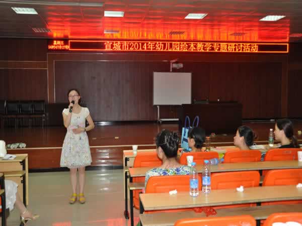 7月30日,市二幼教师参加了“宣城市2014幼儿园绘本教学专题研讨活动”。此次活动由市教研室组织,邀请了上海市特级教师、十佳中青年教师、上海本溪路幼儿园业务园长应彩云老师前来主讲。