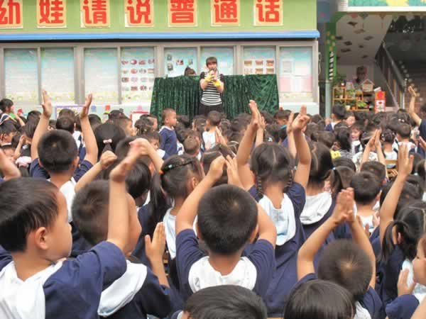 此次表演的手偶戏是市二幼“1+1”艺术团老师们献给孩子们的“六一”礼物,也是在五月初市二幼及各分园的手偶戏比赛中精选出来的优秀剧目,每个剧目从编剧、配乐、录音到舞美,都是老师们利用休息时间精心制作的。对于看惯了动画卡通的孩子们来说,手偶戏给他们带来了全新的感受,直观地领略了中国民间传统文化艺术的魅力。