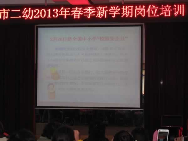 2月22日下午,市二幼全体教职工在多功能厅参加了新学期岗位培训活动。
