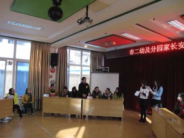 为使幼儿园安全工作常抓不懈,结合当前形势和幼儿园特点, 12月3日,市二幼举行了家长“安全知识竞赛”活动,总园及分园各班选派的28位家长代表组成了四支参赛队参加了此次竞赛。