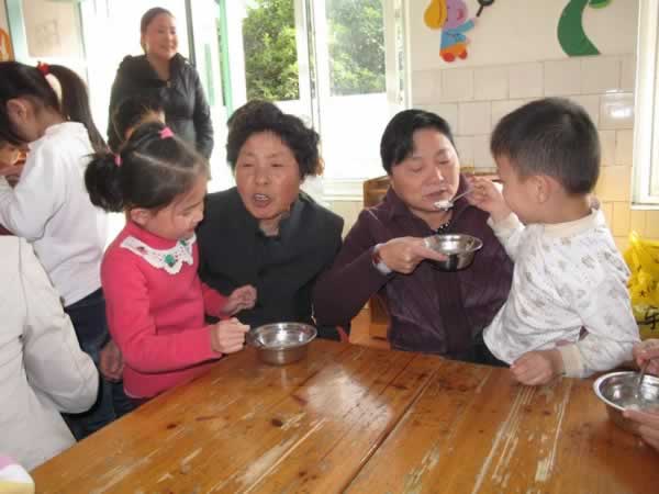 “喂汤圆”:当孩子们把一颗颗汤圆送到老人嘴边时,老人们感慨万千,喜悦欣慰的笑容洋溢在脸上。