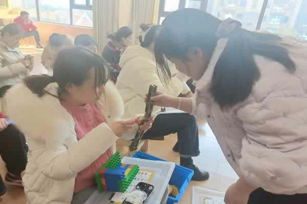 为熟练掌握这些乐高技能,培训讲师对每一项技能都进行了详细的讲解与示范,同时老师们也实际操作跟随讲师一同学习各年龄段乐高技能,为后续的乐高游戏开展打下坚实基础,过程中培训讲师认真细致的对教师作品做出点评与指导,确保每一位教师都能够熟练掌握乐高技巧。