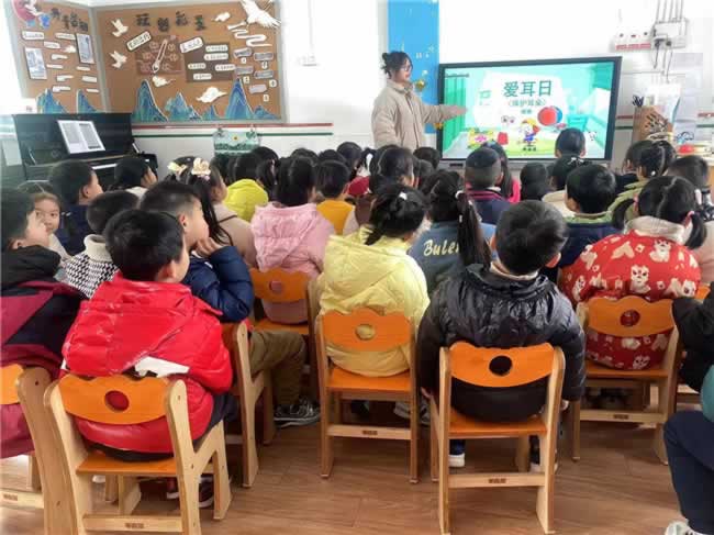 孩子们认真聆听老师分享的故事,理解耳朵的重要性,知道只有保护耳朵,才能聆听美好。