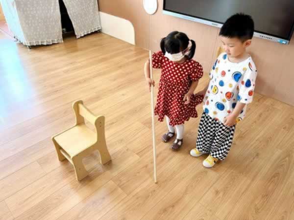 为了让幼儿直观感受体验眼睛的重要性,各班教师积极组织“盲人探路”、“蒙眼取物”等趣味游戏,让幼儿亲身体验感受到了看不见的烦恼,更好地激发了爱眼、护眼的强力意识。