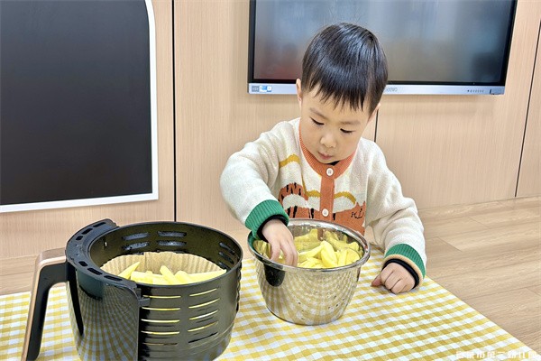 卷薯条时,锻炼了孩子们的手指灵活度,同时也掌握了对折的技能。