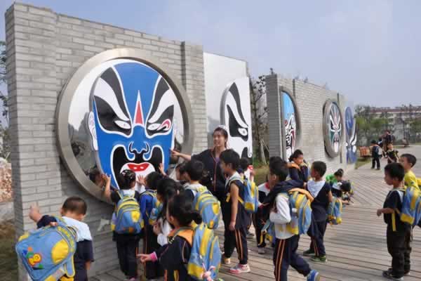 一走进梅溪公园大门,小朋友们就被高大的梅尧臣雕像吸引,当得知梅饶臣是伟大的诗人、文学家,梅氏家族还有许多有本领的数学家、天文学家等,都惊叹:“哇!好厉害!本领真大!”梅溪公园里有青青的竹园、绿绿的草地、鲜艳的花朵、可爱的石子路、长长的廊亭、形象的脸谱……一步一景,一景一画,美丽的风景让孩子们兴奋不已。孩子们在公园里嬉戏玩耍,银铃般的笑声回荡在公园的每一个角落。玩累了,大家就地坐下来,互相分享各自带来的食物,当然,孩子们不忘做个环保小卫士,把垃圾全部扔进垃圾桶里。