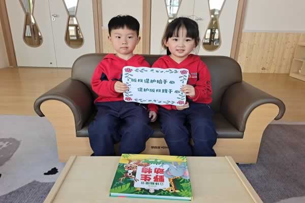 随后,各班还开展了“争做绿色阅读宣传小卫士,远离和抵制盗版及非法出版物”宣传活动。幼儿手持宣传标语,表达大家对抵制盗版及非法出版物的决心。