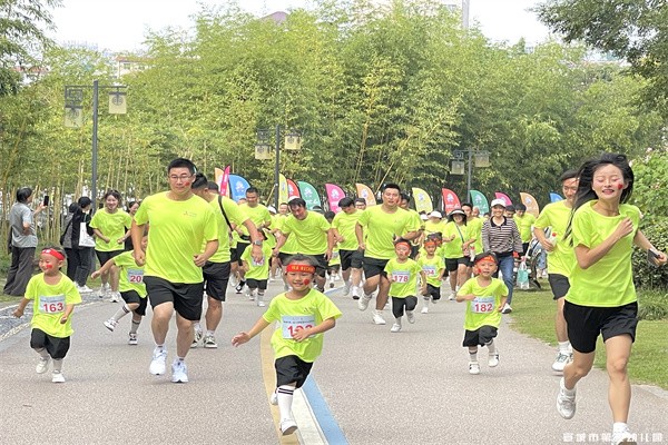 早已按捺不住喜悦的小运动员们聚集在这里。他们脸上洋溢着笑容,在老师的带领下,跟着音乐的节奏动起来了,为即将开始的Mini马拉松热身。