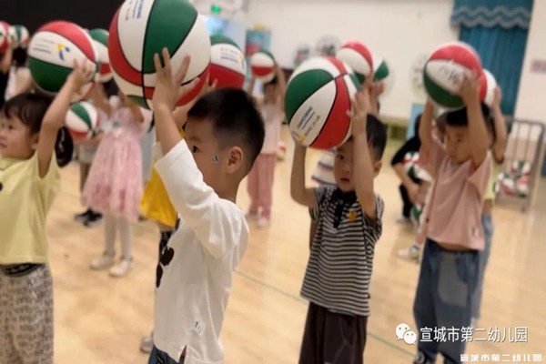 小小的手掌,大大的力量。看!小班的小朋友们正在积极认真的练习篮球。花样篮球不仅能促进幼儿的手眼协调增强体制,而且能促进大小脑的平衡,培养孩子的耐力,坚持性等良好品质。