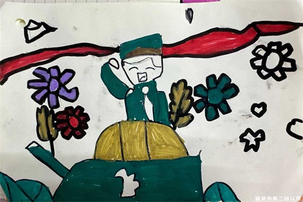 看完了精彩的阅兵仪式,孩子们有开心,有自豪。有的孩子大声吐露出自己的想法,有的孩子通过绘画表达自己的感受,这些感受终将会成为孩子们成长中的印记。