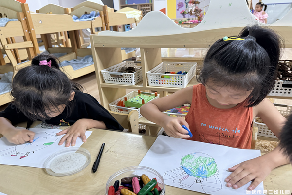 为了让孩子们从小树立爱护地球、保护地球的意识,孩子们用自己的画笔绘画出自己心中“绿色的地球”,用自己的小作品为保护地球的宣传贡献力量。