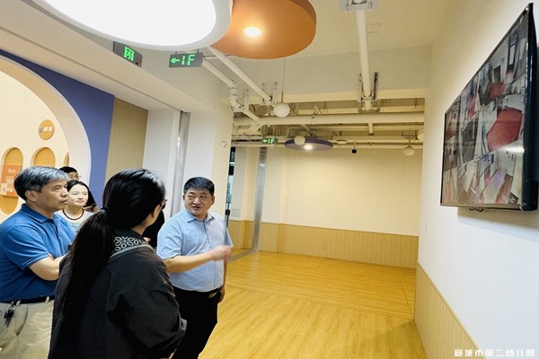 在宣城二幼党支部书记、园长徐雅娟的陪同下,刘俊一行实地查看了宣城二幼的整体环境、硬件设施,详细了解了师资配备、课程特色及后勤保障等情况。并对宣城二幼规范有序的管理和充满活力的育人氛围给予了充分肯定。