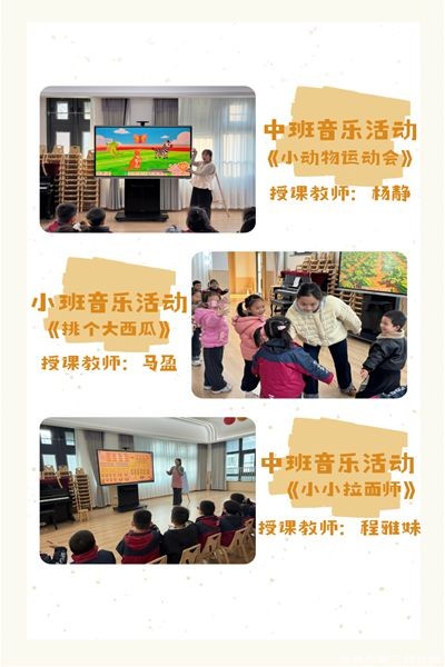 经过第一轮园区内的初选与打磨,参与本次展示的教师立足儿童年龄特点与发展需要,精心设计教学活动,将节奏、旋律、表现与创造融入生动的情境。活动中,老师们巧妙运用乐器、图谱、游戏与故事,引导幼儿在倾听、演唱、律动与奏乐中感受音乐之美,激发表达与创造的愿望。