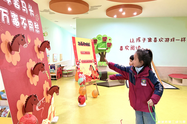 园内欢声四起,趣味游戏纷呈。马上有福、欢乐钓福气、马上“舀”汤圆……多项游戏次第展开。孩子们手持打卡券,化身“小骏马”,在欢声笑语中接住新春福气,在趣味游戏中收获成长,每一项游戏都藏着温暖祝福与满满欢喜,让福气与童趣一路相伴。