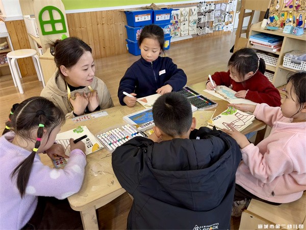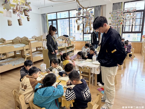 随后,见习生们来到班级观摩了幼儿表征与思维共享活动。幼儿们手持自己的游戏作品,大胆用语言、绘画讲述游戏经历,分享发现与困惑。教师耐心倾听、适时追问,引导幼儿梳理思路、表达想法。见习生们认真聆听,直观感受幼儿如何通过表征外化思维,学习教师如何支持幼儿表达、促进同伴间思维碰撞,也让自身对幼儿园保育教育的认知从理论层面稳步迁移到实践体验中。
